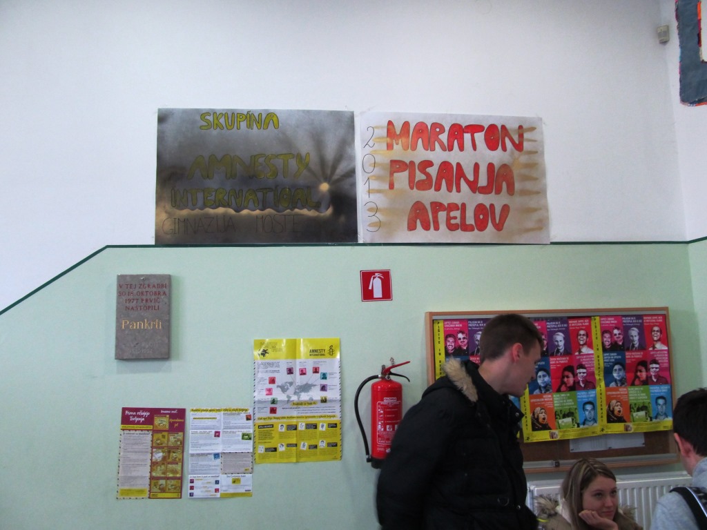 Na Gimnaziji Moste deluje šolska skupina Amnesty International; njeni člani so v decembru takole med odmori zbirali podpise