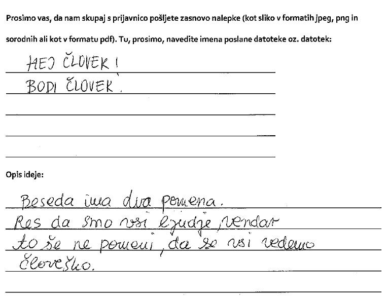 Sabini iskreno čestitamo, vsem sodelujočim pa se zahvaljujemo, da so razmislili o tematiki in ustvarjali slogane, ki pozivajo k strpnosti. Vam je nalepka všeč? Na Poti ob žici nas 5. in 6. maja poiščite na naših informacijskih točkah in z veseljem vam jo podarimo!