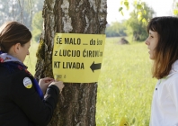 V petek dopoldne smo se posvetili mladim pohodnikom in pohodnicam ter njihovim spremljevalcem: okoli 1400 mladih je izpolnilo naš kviz, s katerim so spoznavali nekatere znane begunke in begunce, kakšnih 500 pa jih je sodelovalo tudi v participatornem šovu, ki ga je na kontrolni točki Livada večkrat ponovila Lucija Ćirović (fotoutrinki so zbrani v spodnji galeriji). Njihovim spremljevalcem smo predstavljali tudi Šolo človekovih pravic - brezplačna gradiva in aktivnosti ter jih povabili k prejemanju našega novičnika.