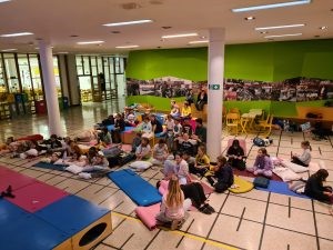 »Noč knjige je dogodek, ki spodbuja branje in širjenje ljubezni do knjig. Zato smo tudi tokrat pripravili pester program z različnimi dejavnostmi. Najprej smo si v razredu po oddelkih z žrebom izmenjali knjige (vsak učenec je dobil novo knjigo s posvetilom). To je bil odličen način za odkrivanje novih zgodb. Učenci so bili vznemirjeni in navdušeni nad knjigo, ki so jo prejeli od sovrstnika. Branje s kužki iz društva Tačke pomagačke je bila zopet prijetna in vznemirljiva izkušnja. Po branju so učenci kužke lahko božali, jih vodili na povodcu na šolskem atriju in se z njimi tudi igrali. Tudi predstavitev knjige Govoreči bumerang s psihologinjo Doris Lozej in ilustratorko (njeno sestro) Karin Berce je bila zelo zanimiva. Zelo jih je pritegnila vsebina; imeli so nešteto vprašanj za obe gostji. Na koncu pa je sledila še meditacija z Doris. Ob zaključku dogodka je sledila podelitev pohval za sodelovanje v projektu in fotografiranje s knjigo in njeno avtorico ter ilustratorko,« nam je sporočila Suzana Pertovt.