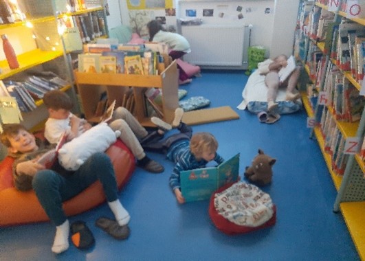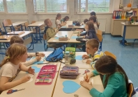 »Petek, 4. april 2025, je bil za učence 3. a zelo poseben. Starši so svoje otroke ob 17. uri pripeljali nazaj v šolo, saj jih je čakala noč v knjižnici. Prtljaga otrok je bila precej »nešolska«; spalna vreča, plišaste igrače, naglavna svetilka, škatla za jajca … Ker je vreme kar vabilo v naravo, smo s škatlami za jajca najprej odšli na travnik in v gozd, kjer so otroci našli rešitve desetih ugank. Skrbno so jih shranili v škatle. V učilnici na prostem so si v parih pripovedovali pravljico, ki so si jo izbrali za govorni nastop. Po večerji so pozorno prisluhnili pravljici Majde Koren Skuhaj mi pravljico! in v lonce narisali zabavne sestavine za juhe. Nato smo prisluhnili rezultatom ankete priljubljenosti pravljic med starši in otroki. Zmagale so Rdeča kapica, Volk in sedem kozličkov, Pogumni krojaček in Ribek. V knjižnici je sledilo pripravljanje ležišč, nato pa presenečenje, ki ga je otrokom pripravil Dioniz, ki skrbi, da je knjižnica vedno čista. Po zvočniku je otrokom prebral pravljico Gugalnica, pisateljice Anje Štefan. Poskrbel je tudi, da se je zaslišala uspavanka. Po večerni toaleti so se otroci kočno lotili branja z naglavnimi in žepnimi svetilkami. Najbolj vztrajni bralci so z branjem vztrajali do polnoči. V sanje so se jim gotovo prikradle dogodivščine s prijatelji in pravljičnimi junaki. Glave polne vtisov in drugačno spalno okolje, sta poskrbela, da se je jutro za večino učencev pričelo že zelo zgodaj. Po zajtrku je sledilo pospravljanje in ob 9. uri odhod domov. Učenci so domov odnesli bralne nahrbtnike s knjigami in navodili, kako si pripraviti noč s knjigo doma v družini. Glavno navodilo družinske noči s knjigo je, da naj bo ta noč knjige še bolj zabavna in še bolj polna prebranih knjig, kot je bila v šoli. V ponedeljek so nadaljevali s pravljicami, ki jih sedaj znajo »skuhati« tudi sami. Domišljijo za zapis so našli v narisanih loncih z zabavnimi sestavinami,« sta na spletni strani šole zapisali Mateja Barbič in Barbara Tušek. Več info in fotografije.