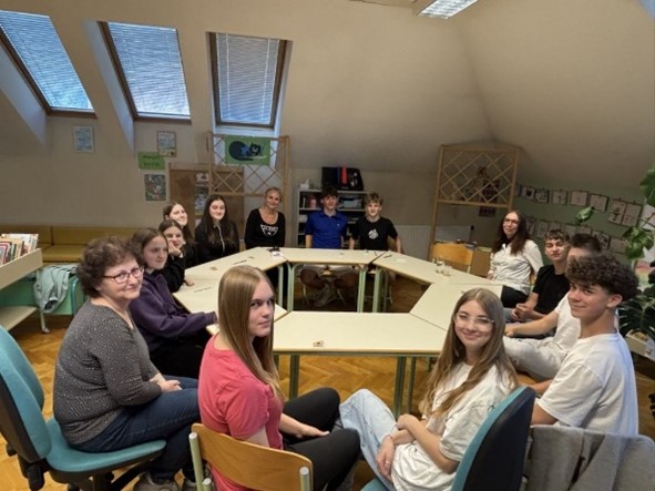»Letos smo v okviru Noči knjige pripravili prav poseben večer, ki se ga je udeležilo 22 učencev od 6. do 9. razreda. Noč knjige smo imeli 17. 4. 2025. Dogodek smo začeli s socialnimi igrami, ki so poskrbele za prijetno vzdušje in povezovanje med učenci – z različnimi ledolomilci in aktivnostmi za oblikovanje skupine smo uspešno postavili temelje sodelovanja in medsebojne podpore. Pri tem smo se zelo zabavali. Nato smo se peš odpravili na enoto Vinarska, kjer smo spali. Tam je bila na vrsti popoldanska malica. Sledil je prav poseben obisk – med nas je prišla pravljičarka Liljana Klemenčič, ki nas je s pesniško zbirko Steza prijaznih besed in pravljico o kralju, ki ni želel poročiti svoje hčere, popeljala v svet domišljije in toplih misli. Učenci so navdušeno sodelovali, se odzivali na slišano in postavljali zanimiva vprašanja, kar je ustvarilo prijetno, živo pravljično urico. Učenci so zelo uživali. Da bi učencem po poslušanju omogočili nekaj sprostitve, smo izvedli kratke gibalne aktivnosti, nato pa si privoščili večerjo. Po večerji smo se odpravili v park, kjer smo se nadihali svežega zraka, se igrali in uživali. Ko smo se vrnili, smo se sproščeni posvetili branju knjige Tri vprašanja, ki nas je spodbudila k razmišljanju o pomembnih življenjskih temah. Že sama uvodna motivacija je učence zelo pritegnila, saj so sami najprej iskali odgovore na ključna vprašanja. Učenci so se nato najprej sami poizkusili v sestavljanju te zgodbe na način, da so morali sodelovati. Nato je knjižničarka knjigo prebrala in učenci so lahko videli, ali so 23 delov zgodbe pravilno sestavili. Pogovor ob prebranem je bil iskren, globok in zelo živahen. Večer smo zaključili z družabnimi igrami, smehom, branjem in ogledom risanke. Noč knjige je minila v znamenju povezovanja, ustvarjalnosti in ljubezni do knjige. Veseli smo, da smo skupaj preživeli čudovit večer, ki nam bo še dolgo ostal v spominu. Verjamem, da smo učiteljice s skrbno načrtovanimi dejavnostmi in prijetnim vzdušjem pri učencih vsaj malo spodbudili ljubezen do knjig in branja,« je zapisala mentorica: Patricija Bračič.