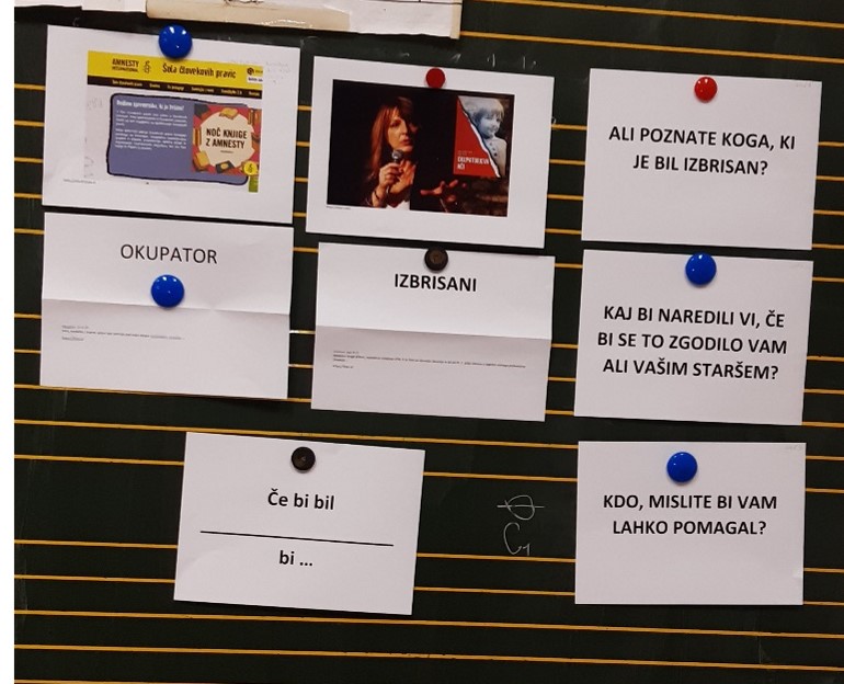 »Noč knjige in učenje o človekovih pravicah s pomočjo knjig nam omogoči Amnesti International Slovenije s ciljem, da »(se) učimo o človekovih pravicah in vzgajamo na spoštovanje človekovih pravic.«. Izbor njihovih knjig nam je v izziv letos smo kot spremljajoči dogodek Noč knjige 2025 osvetlili zahtevno temo izbrisani. V 9. razredu sem dne, 6. maja 2025 z učenci v sklopu razredne ure in s pomočjo knjige Okupatorjeva hči, katere avtorica je Katarina Keček vodila razmišljanje kaj pomeni ali kdo so Šola človekovih pravic, okupator, izbrisani in Katerina Keček. Prebrala nekaj odlomkov iz knjige. Nadaljevala s vprašanji ali poznamo koga, ki je bil izbrisan, kaj bi naredili, če bi se to zgodilo nam ali vašim staršem in kdo bi nam lahko pomagal? In zaključila z delom v skupinah z nalogo Če bi bil župan, predsednik ali varuh človekovih pravic bi … Učenci z razredničarkama so se ob izvajanju dejavnosti zamislili in zavzeto ter resno pristopili k reševanju naloge. Med njimi se je razvil pogovor in pokazali osuplost, da se je to sploh pripetilo in, da je trajalo toliko časa pa se še ni čisto vse uredilo. Vsi skupaj smo prišli do skupnega zaključka, da se to ne bi smelo zgoditi. V šolski knjižnici smo pripravili razstavo,« je zapisala mentorica Lidija Kocbek. Več informacij pa je objavljenih na spletni strani šole.