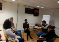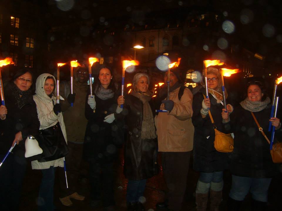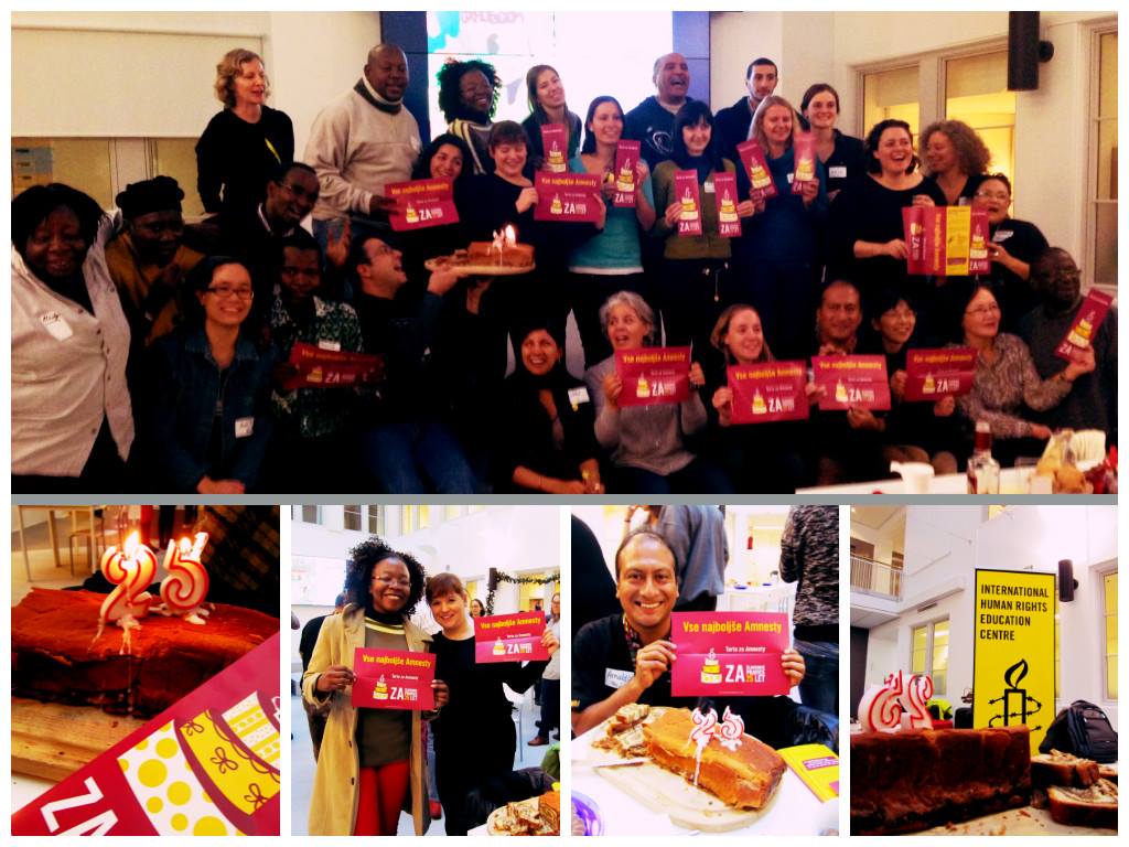 Koordinatorka Šole človekovih pravic Ana Čemažar se je v začetku decembra udeležila usposabljanja o participatornih metodah, ki ga je organiziral Mednarodni center za učenje človekovih pravic (ki deluje v okviru AI Norveške, ki sofinancira našo Šolo). Z udeleženci iz 33 držav so se posvečali predvsem razmerjem moči in opolnomočenju skozi učenje človekovih pravic, teden, ki so ga preživeli skupaj, pa je bila tudi odlična priložnost za izmenjavo izkušenj ter iskanje idej in načinov, kako človekove pravice še bolj približati mladim ter vsem, ki z njimi delajo, zagotoviti gradiva in predloge, s katerimi bo samostojno učenje človekovih pravic še lažje. Ker je bila Ana v Oslu 10. decembra - na dan človekovih pravic in 25. rojstni dan slovenske Amnesty, so vsi skupaj voščili in se posladkali s pravo slovensko potico.