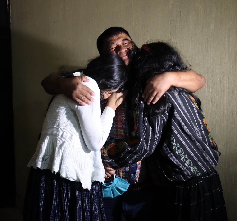 Foto: Bernardo Caal Xol z družino po izpustitvi iz zapora. © Anny Matzir