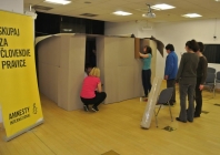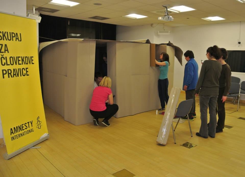 - Naši prostovoljci so izdelali hiško iz kartona, veliko zgolj 12 kvadratnih metorv, udeleženci delavnice (skupina 15-20 učencev) pa so se vsi morali nekako nagnesti vanjo. To pa še ni bilo vse - morali so tudi označiti, kje bi vsi skupaj lahko spali, jedli, se umivali, kam bi postavili stranišče ... Tako so se postavili v kožo ljudi, ki živijo v barakarskih naseljih.