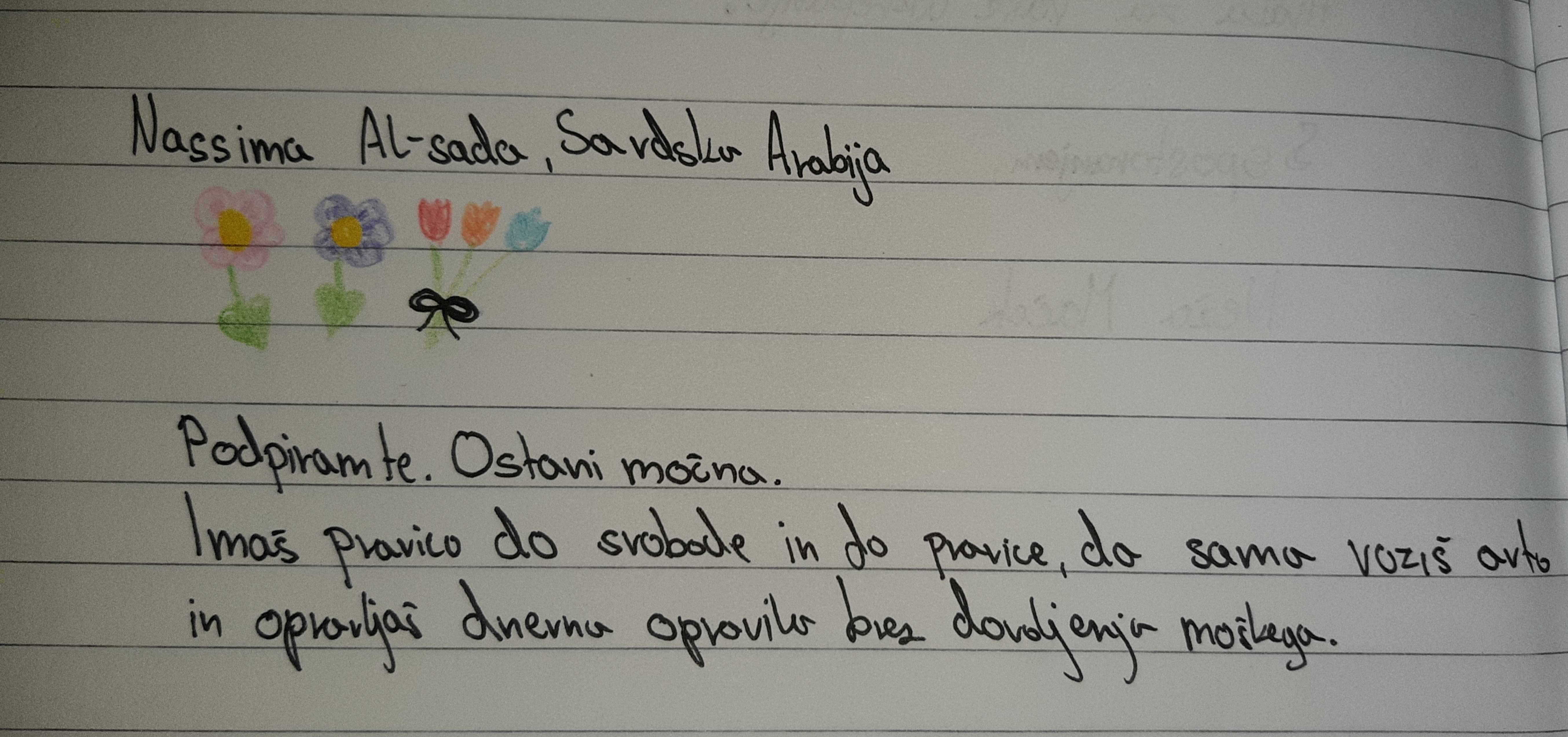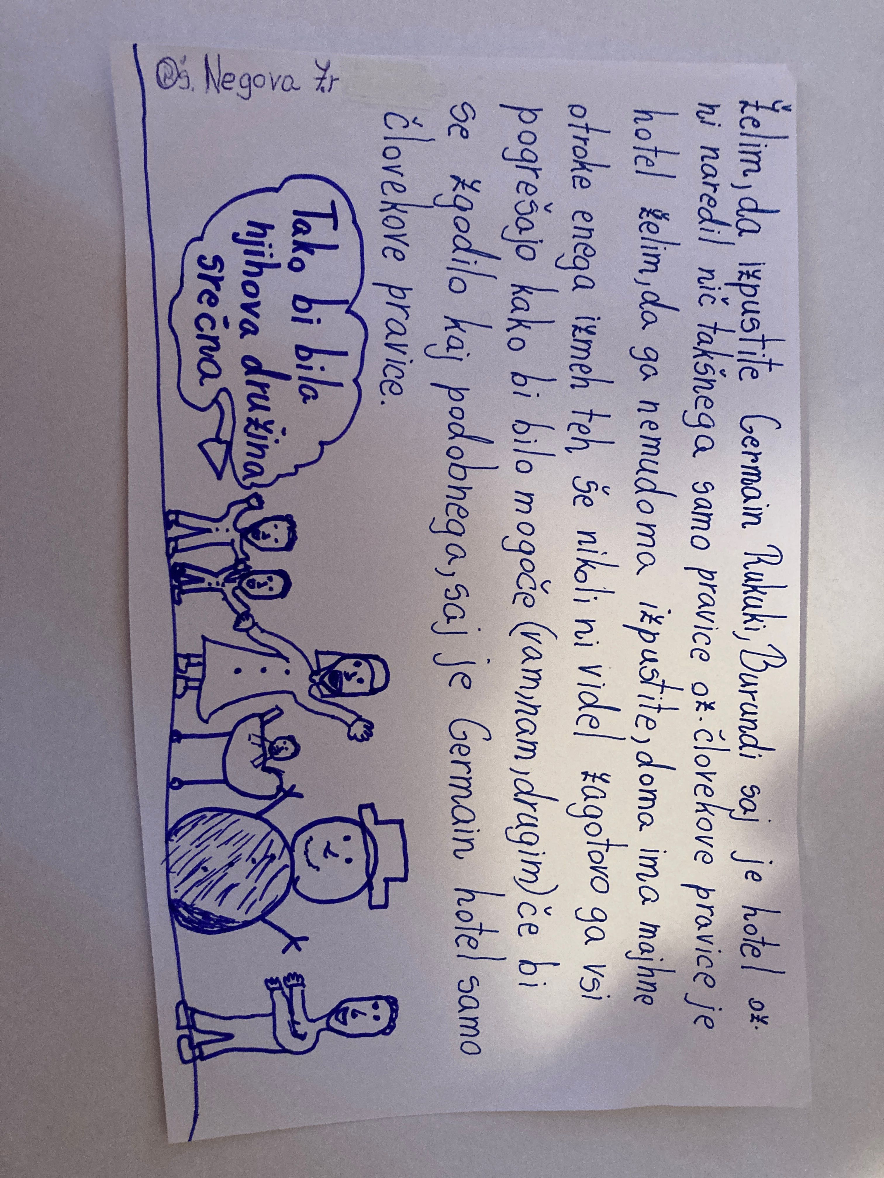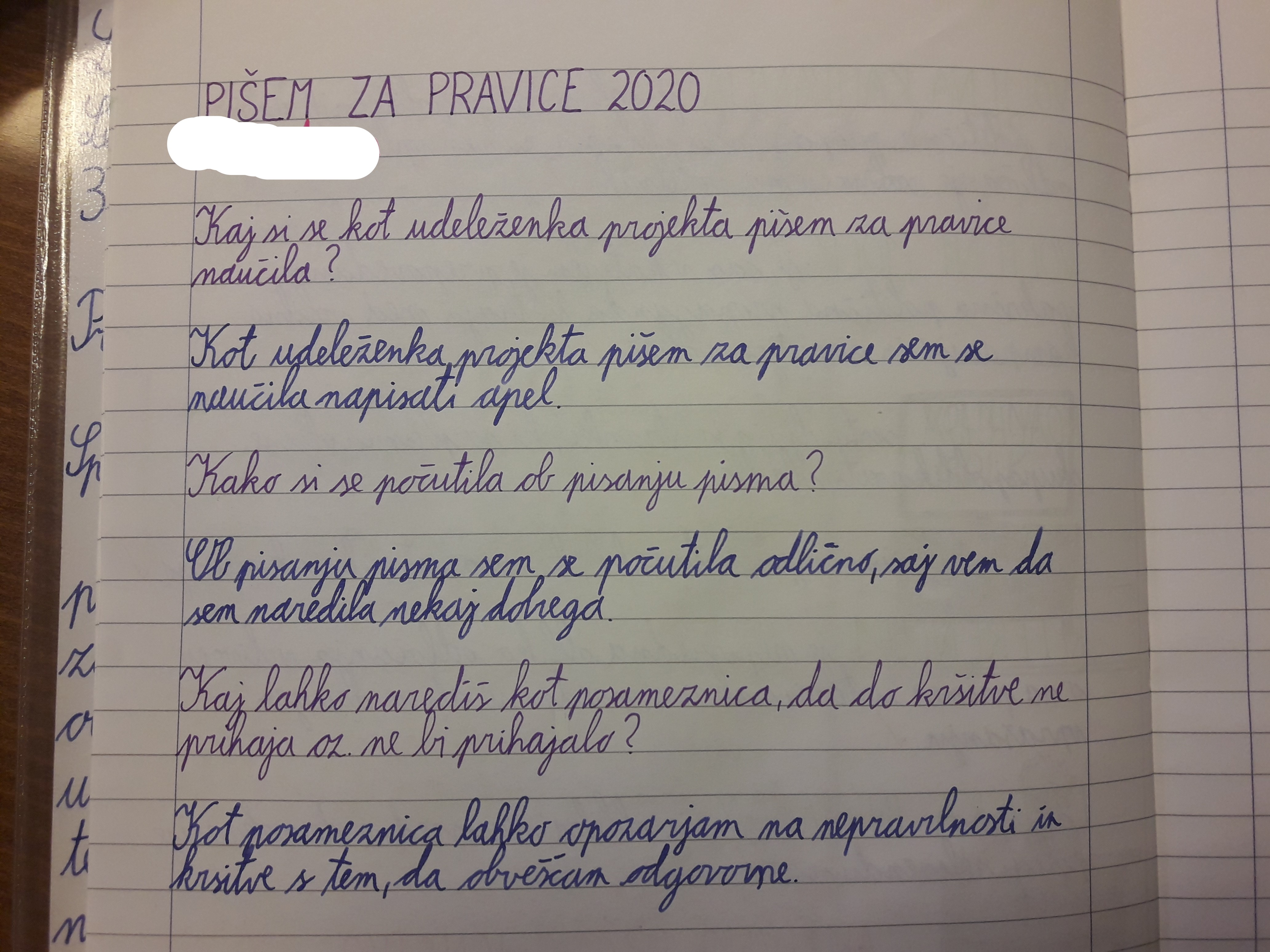 "Danes mi je bilo še posebej lepo, saj smo pisali o človekovih pravicah." (N.)