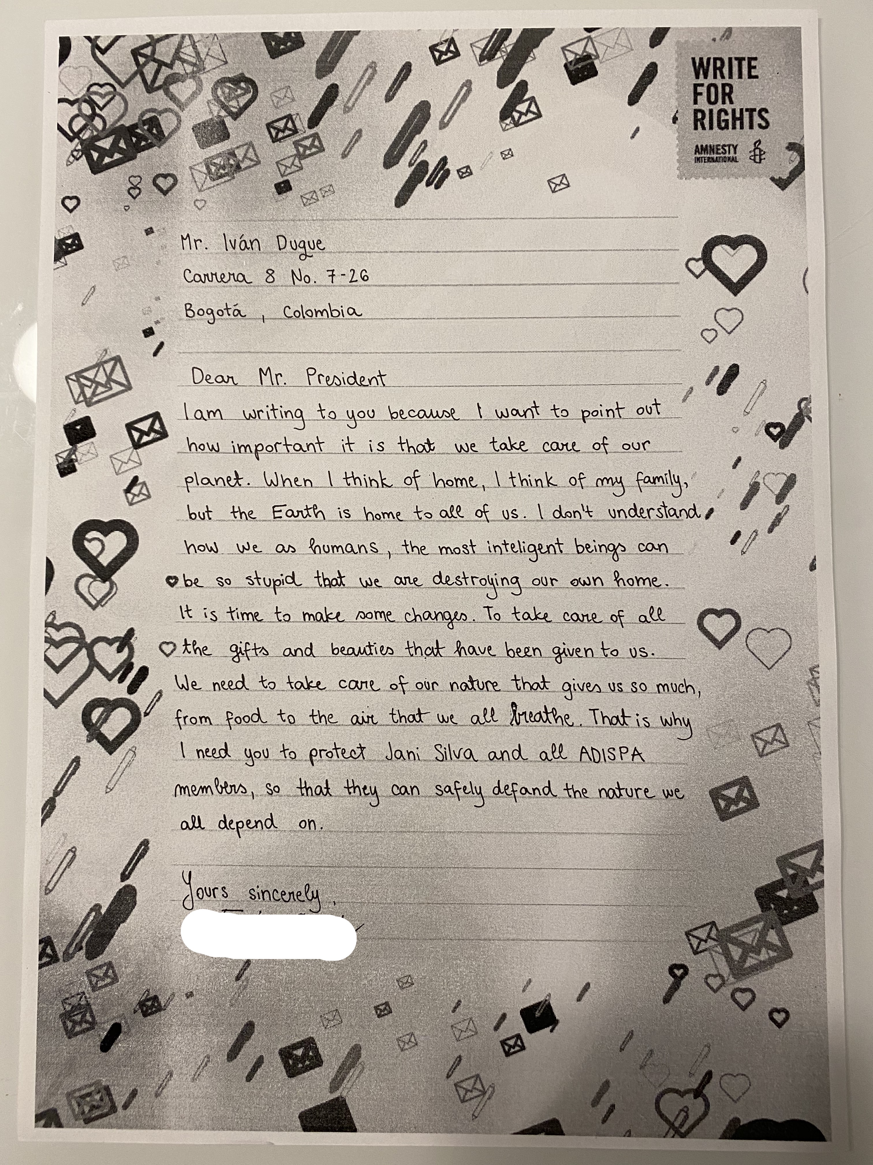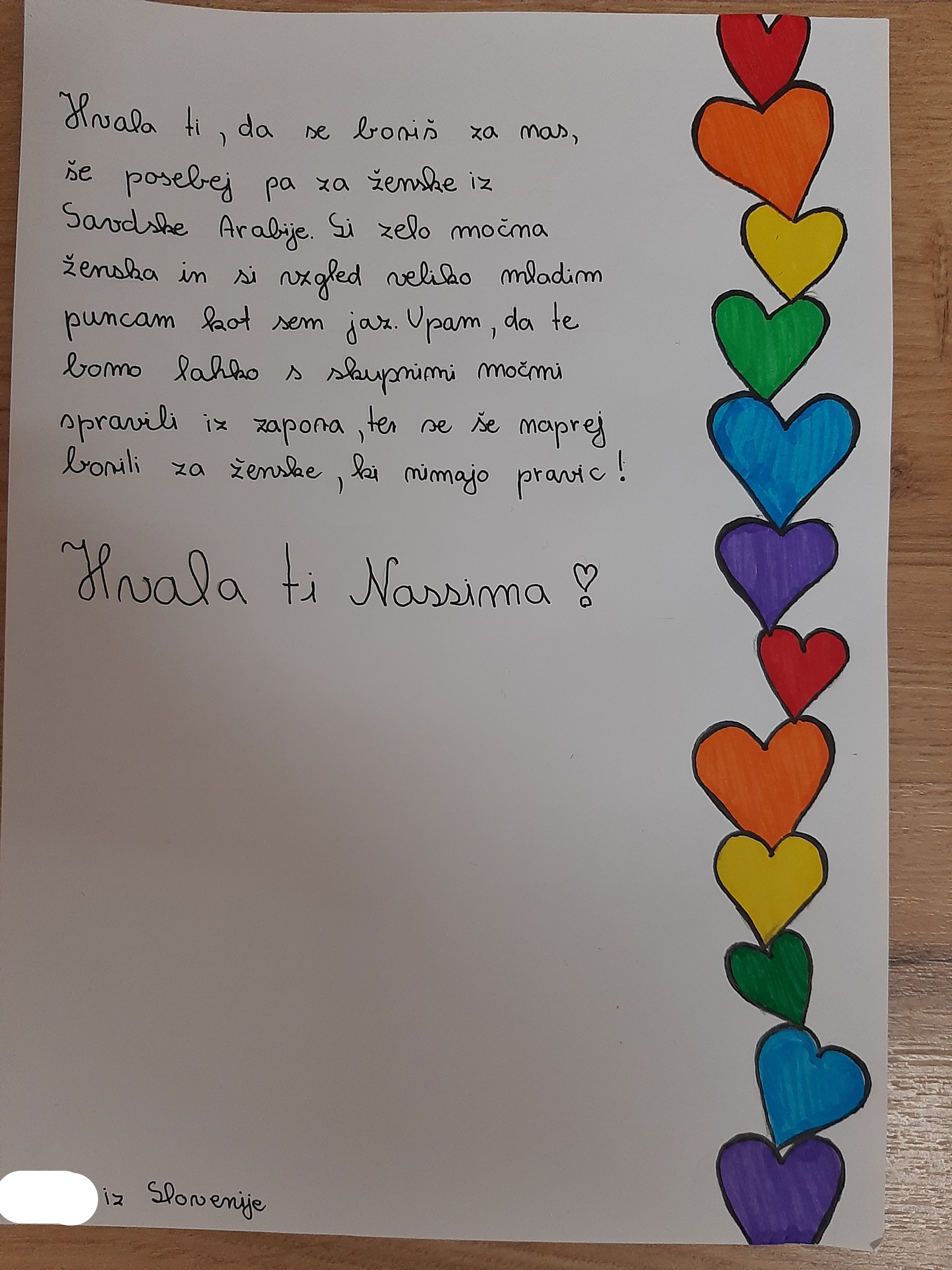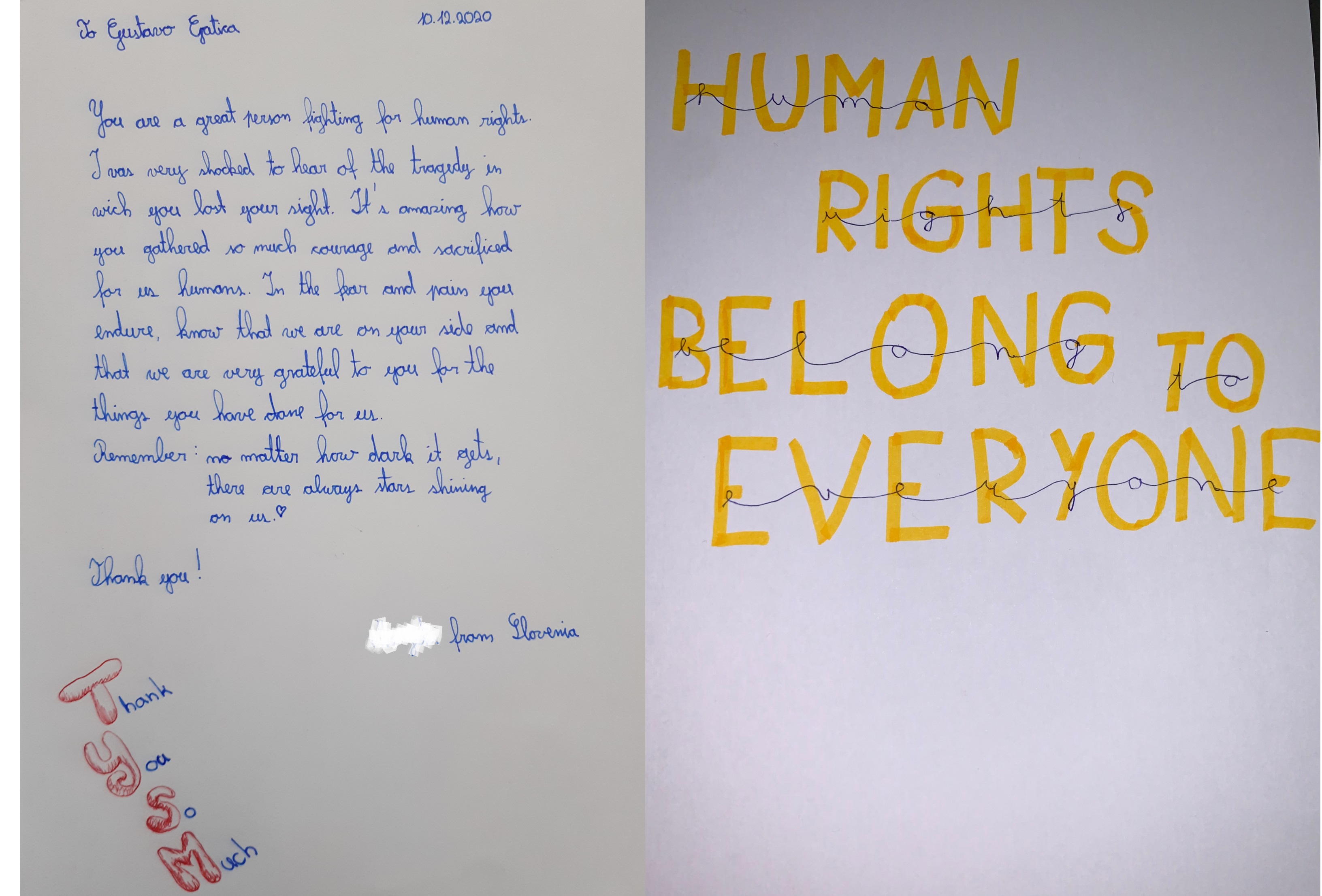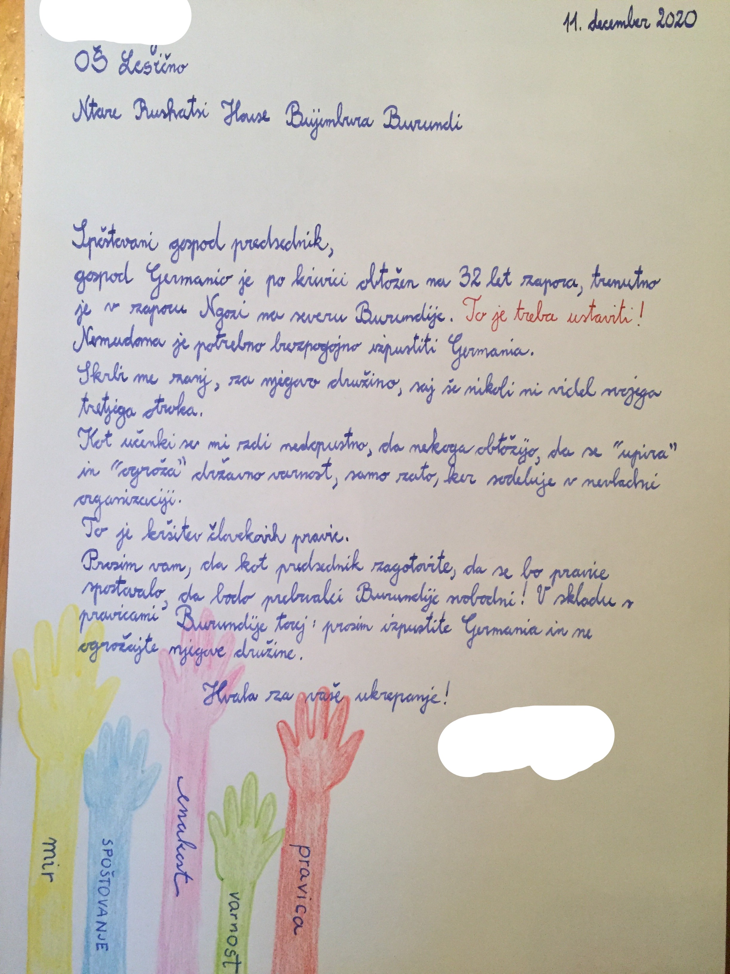 "Bila sem zgrožena, ko sem prebrala, kaj se je zgodilo tem ljudem in kako so jim bile kršene pravice, zato sem bila vesela, da sem pomagala pri odpravljanju teh krivic. Upam, da jim bomo s temi pismi pomagali." (H.)
