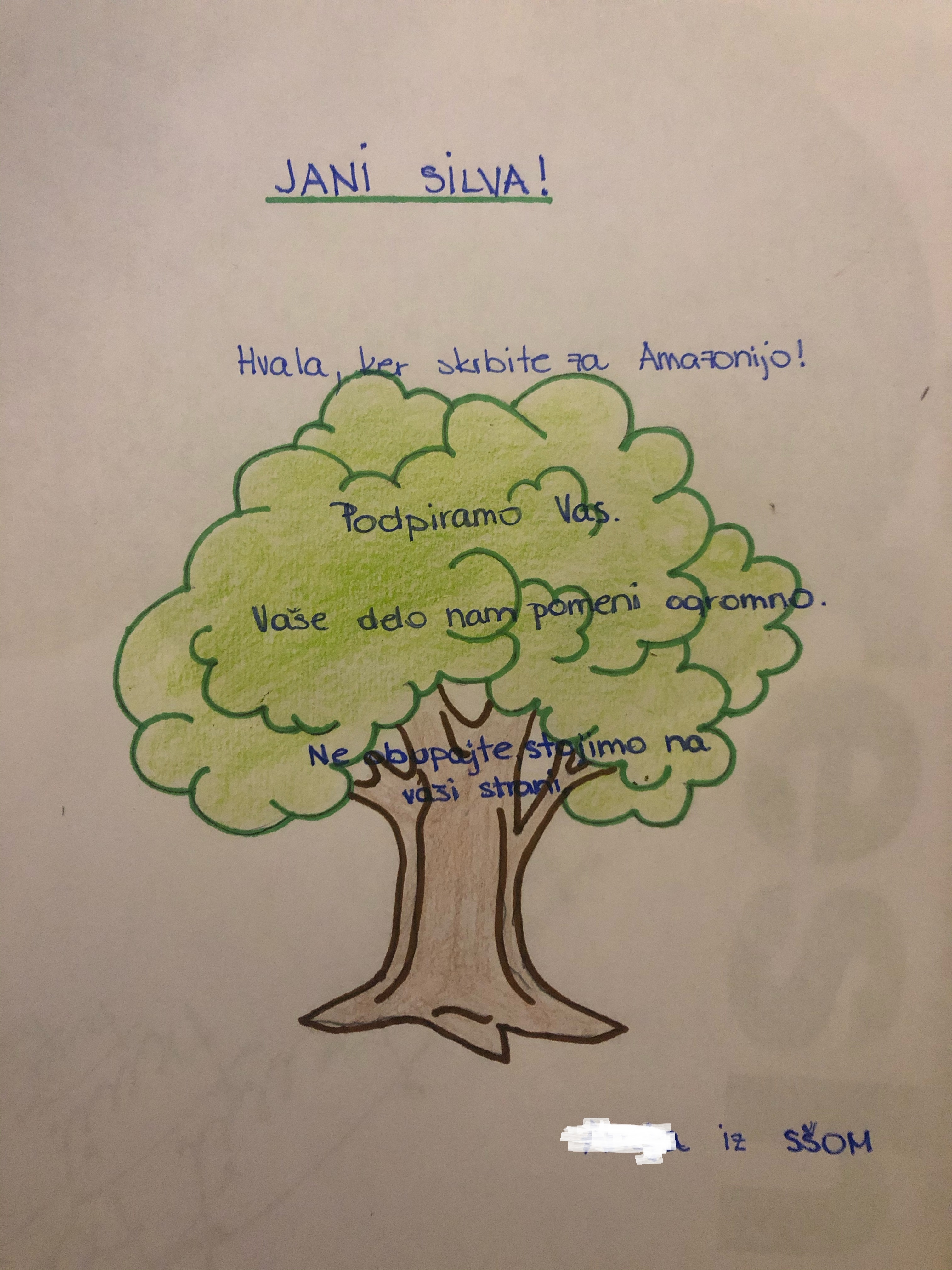 "Dober občutek je, kadar pomagaš nekomu v stiski. Neverjetno mi je, da se ljudje borijo za boljši svet, a jih vseeno zatirajo ter zapirajo. Zelo sem pa vesel, da sem Jani podprl pri boju za amazonski pragozd." (Ž.)