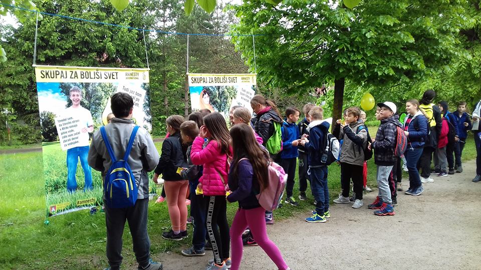 V petek, ko so se na pohod podali mladi in njihovi spremljevalci in spremljevalke iz osnovnih in srednjih šol, smo jih na kontrolnih točkah Koseze, Fužine in Livada pričakali z našimi stojnicami, kjer so lahko dobili našo nalepko Za svet brez žic, ki jo je zasnovala Sabina Magyar, in se fotografirali ob fotozidu z Malalo Yousafzai ali Ryanom Hreljcem.
