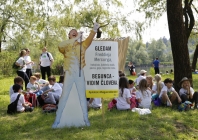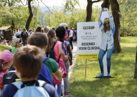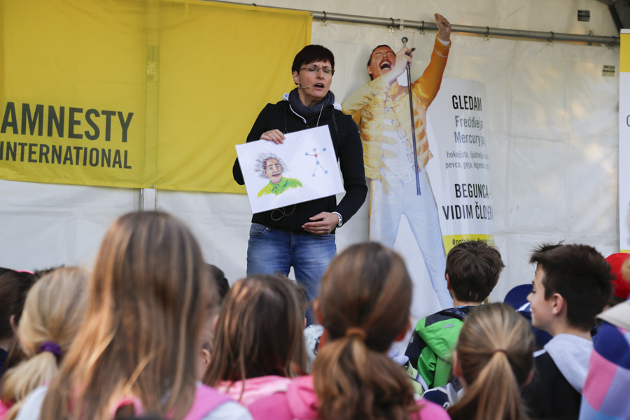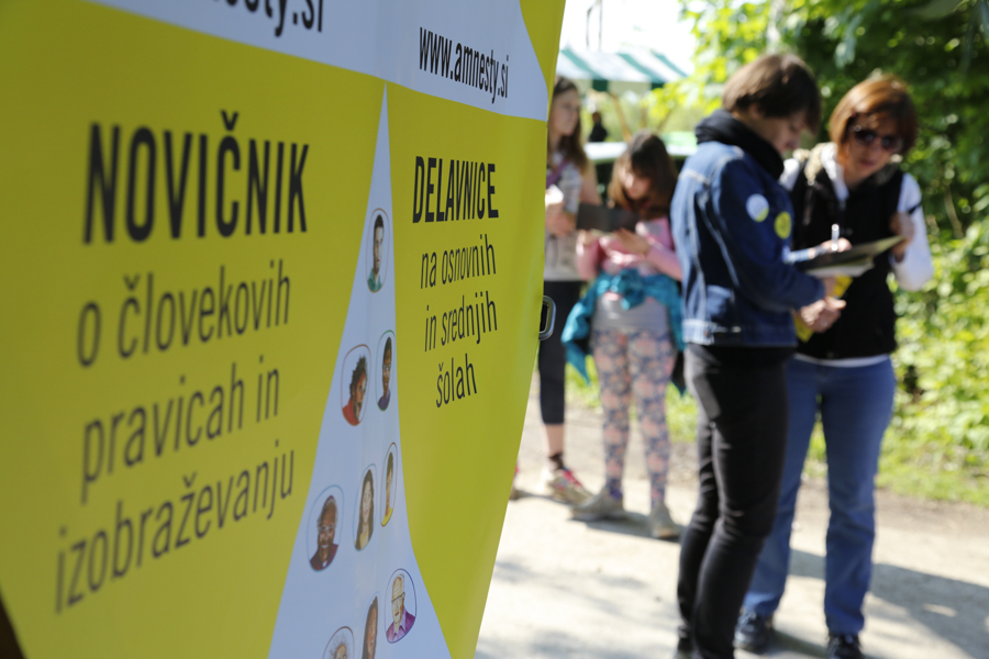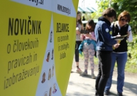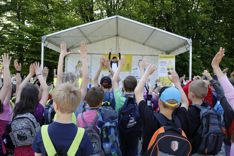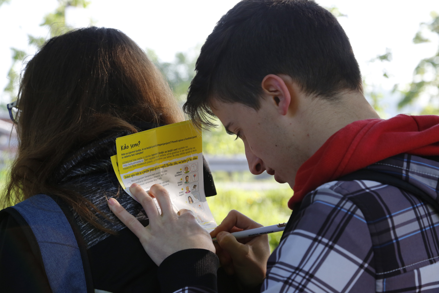 V petek dopoldne smo se posvetili mladim pohodnikom in pohodnicam ter njihovim spremljevalcem: okoli 1400 mladih je izpolnilo naš kviz, s katerim so spoznavali nekatere znane begunke in begunce, kakšnih 500 pa jih je sodelovalo tudi v participatornem šovu, ki ga je na kontrolni točki Livada večkrat ponovila Lucija Ćirović (fotoutrinki so zbrani v spodnji galeriji). Njihovim spremljevalcem smo predstavljali tudi Šolo človekovih pravic - brezplačna gradiva in aktivnosti ter jih povabili k prejemanju našega novičnika.