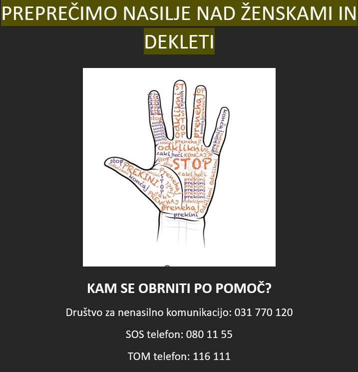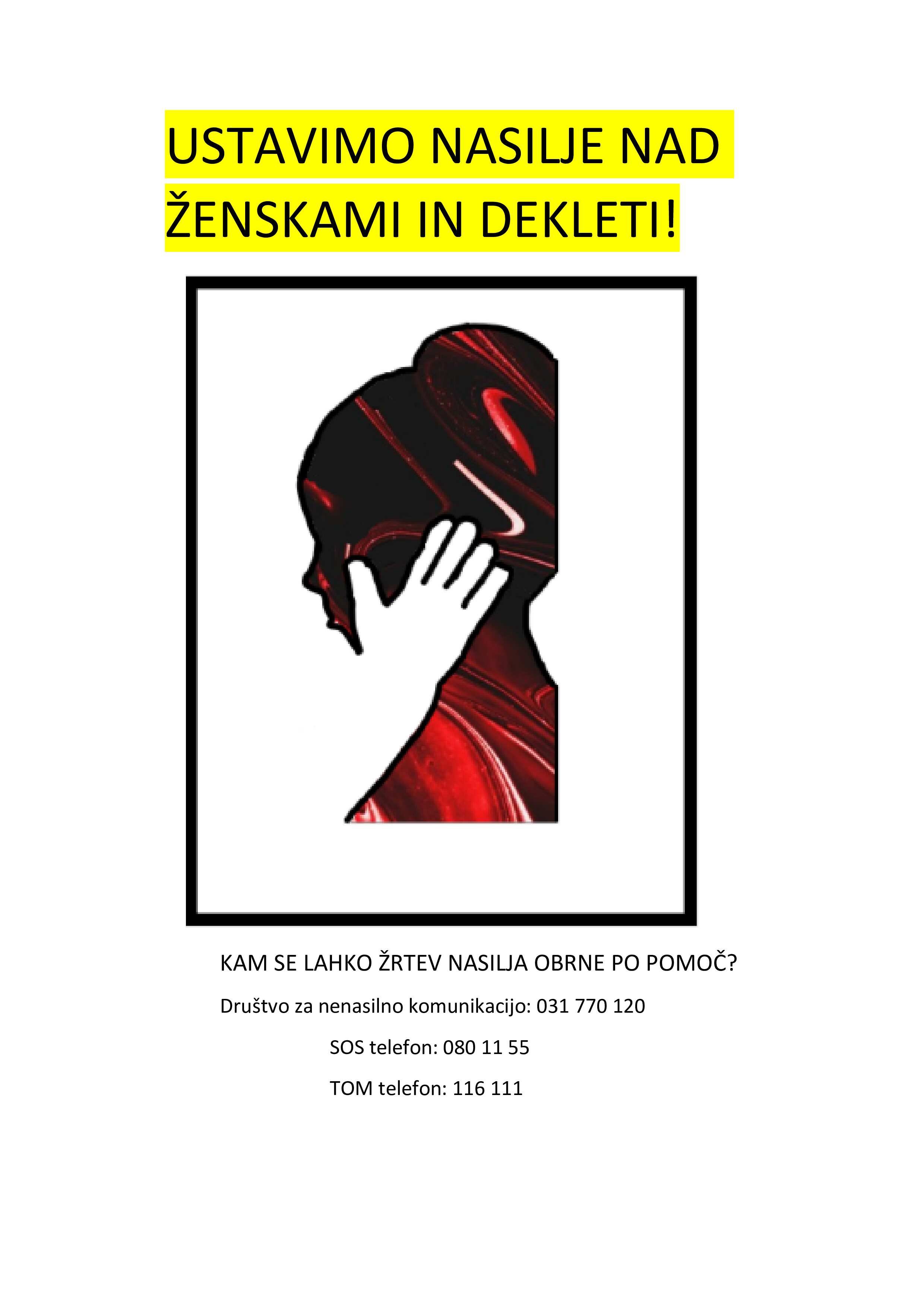 Dijakinje in dijaki 2. letnika gimnazije Srednje šole Slovenska Bistrica so ob 8. marcu, dnevu žensk, pri pouku ITS2 - družboslovje ustvarjali plakate, v okviru obravnave izobraževalnega paketa Ukrepajmo proti nasilju na podlagi spola.