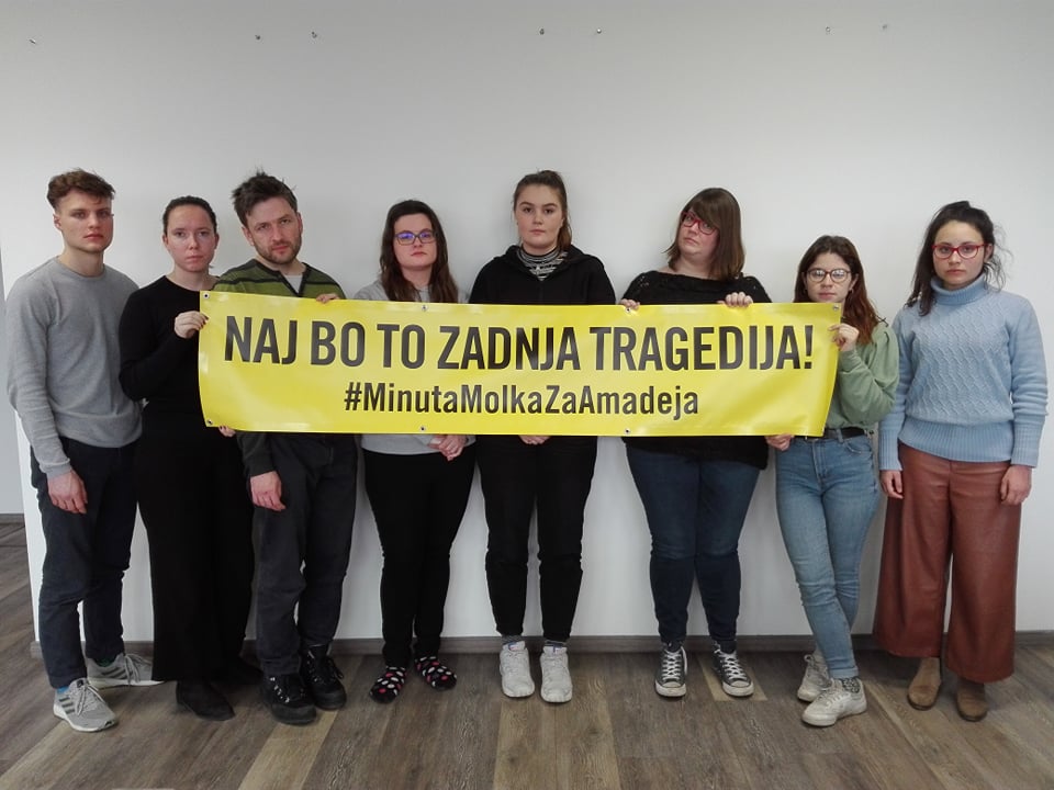 Poslali vam bomo transparent z napisom "Naj bo to zadnja tragedija! #MinutaMolkaZaAmadeja" (spodaj) in plakat-vabilo, ki ga boste lahko obesili v prostore šole in povabili k izvedbi minute molka.
