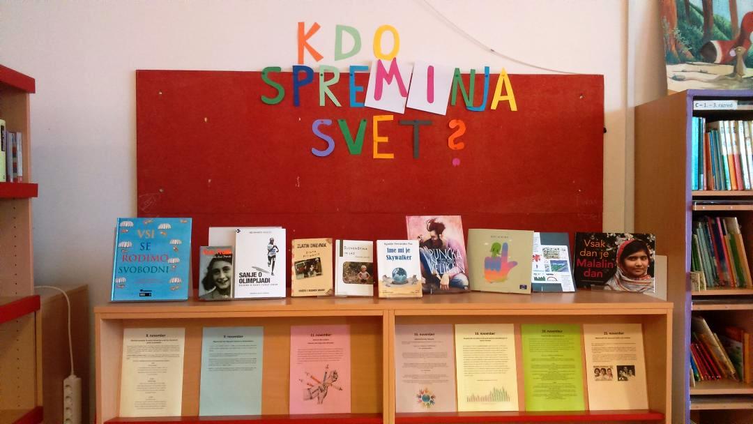 Na OŠ Kašelj so letos v knjižnici pripravili poseben kotiček z naslovom Kdo spreMInja svet, kjer so učenci lahko brali o tistih, za katere so se apeli pisali; pripravili so tudi nabor knjig, povezanih s človekovimi pravicami.