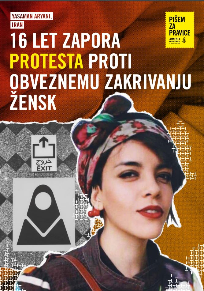 Se spomnite Yasaman Aryani iz Irana, ki je žal zaprta, ker je protestirala proti temu, da morajo ženske v Iranu v javnosti nositi naglavno ruto? Zanjo ste številni med vami pisali apele in solidarnostna sporočila na Pišem za pravice 2019.