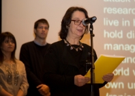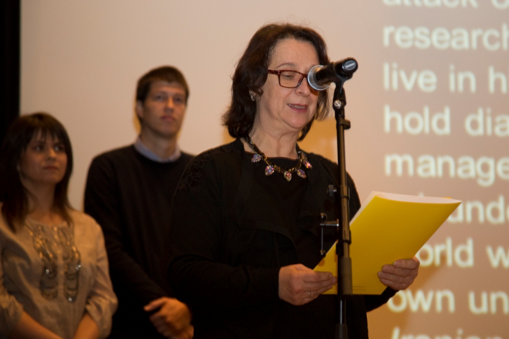 Druga članica žirije Jelka Stergel je razglasila zmagovalca - Goli otok režiserke Tihe K. Gudac. (Foto: Tanja Ristič)