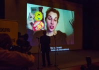 Pred razglasitvijo zmagovalca je član žirije Goran Vojnović najprej čestital mladim ustvarjalcem za odličen film in jih spodbudil, naj ustvarjajo še naprej, ter prebral obrazložitev, zakaj si je film Biti Iranec prislužil posebno omembo žirije. (Foto: Tanja Ristič)
