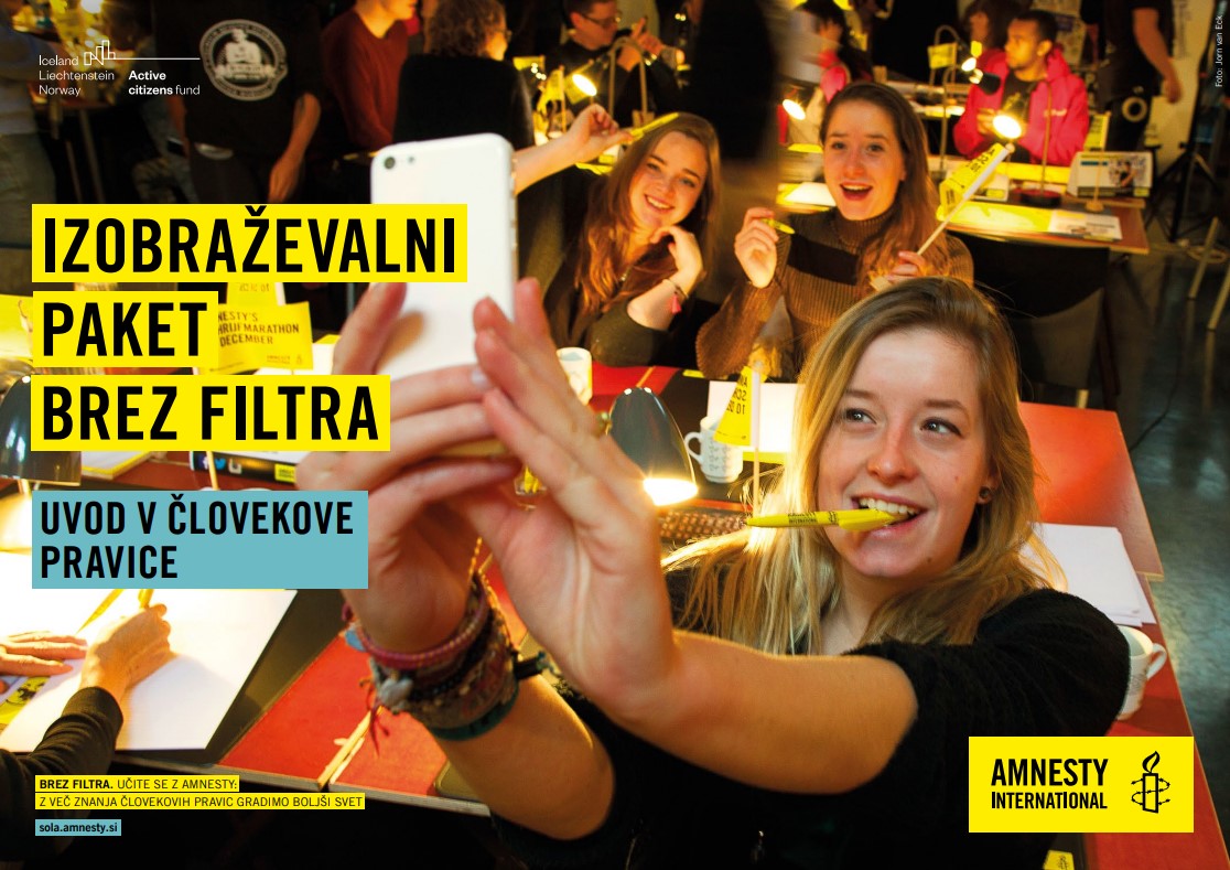 Izobraževalne pakete Brez filtra oblikujemo v okviru projekta Učite se z Amnesty: z več znanja človekovih pravic gradimo boljši svet. |