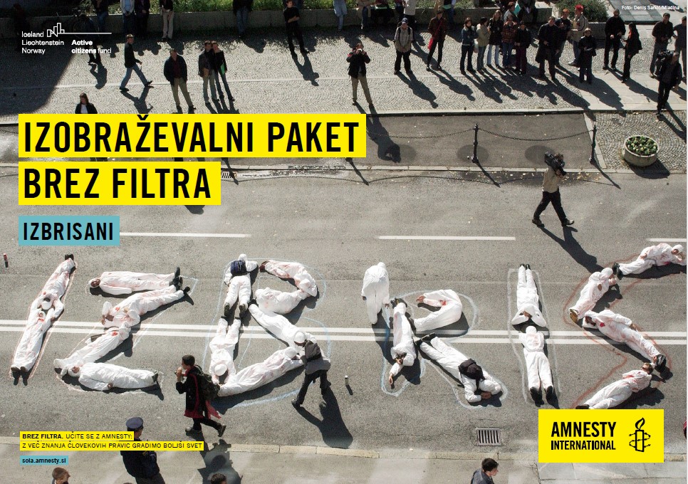 Izobraževalni paket Brez filtra: Izbrisani Seznanite svoj razred z izbrisom, to množično kršitvijo človekovih pravic, ki so jo storile slovenske oblasti ob začetku nove države. Februarja 2022 se je za izbris v imenu države opravičil takratni predsednik Borut Pahor. V izobraževalnem paketku boste našli: