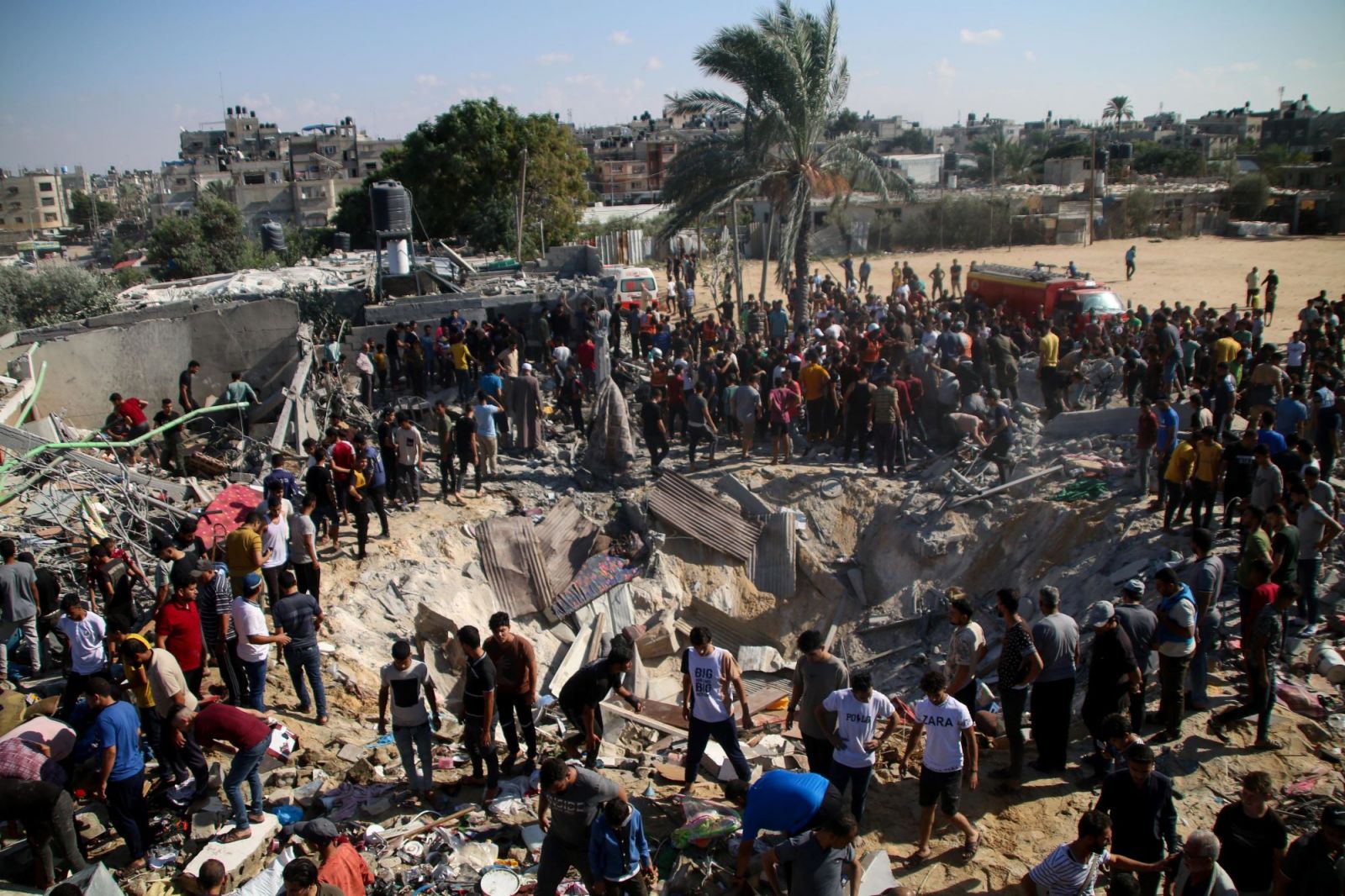 Foto: Palestinske službe za nujno pomoč in civilisti iščejo žrtve v stavbah, uničenih med izraelskimi zračnimi napadi na južnem območju Gaze 19. oktobra 2023. Ahmad Hasaballah/Getty Images