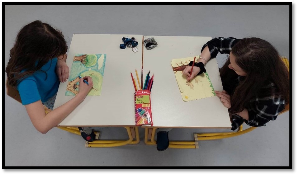 »Delavnico smo organizirali v sklopu kulturnega dne pod imenom "Berem, da moči naberem". Ves dan na šoli je bil namenjen delavnicam v zvezi s prebranimi vsebinami. V eni izmed učilnic smo izkoristili površino 10,8 m x 2 m za ilustracijo po prebrani knjigi, ogledu ilustracije ter diskusiji o vsebini knjige "Vrtiljak"...,« nam je sporočila mentorica mag. Mateja Kranjc.