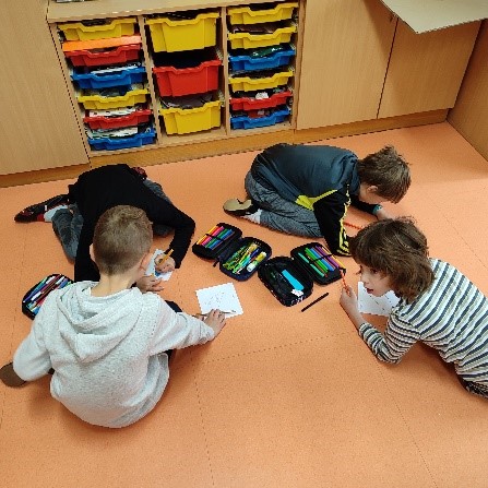 »20. aprila smo se ob 10.15 uri zbrali z učenci, ki obiskujejo dodatno strokovno pomoč, da bi skupaj prebrali knjigo Gorana Vojnovića: Sinica in Taščica. CILJI, ki sem jih z dogodkom želela doseči so: Približati knjige učencem; Predati učencem sporočilo o pomembnosti prijateljstva in kako dragocena je različnost med nami; Ustvariti plakat, ki bo prikazoval sporočilo slikanice. Skupaj z učenci smo se posedli v krog na blazinice, ki so bilje pripravljene v učilnici. Učencem sem prebrala knjigo. V krogu smo se pogovorili o vsebini knjige in o njenem sporočilu. Učenci so delili svoje izkušnje o prijateljstvu in medsebojni pomoči ter različnosti med nami. Opisali so, kako so pomagali drugim in kako so drugi
