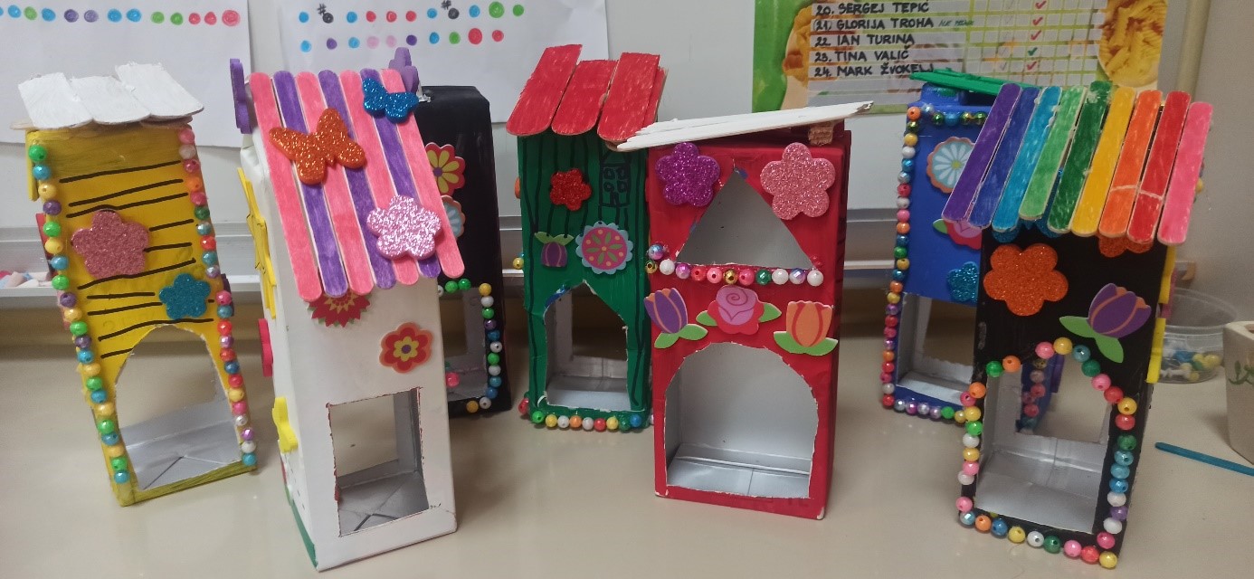 »V letošnjem šolskem letu smo z učenci prebrali knjigo Sinica in taščica. Branje smo naredili v več delih. Popestrili smo ga z lutko ptičke, ki je otrokom pripovedovala zgodbo iz knjige. Naredili smo tudi poseben dogodek, kjer smo se z učenci pogovarjali in skupaj razmišljali o prebranem besedilu. Naredili smo več delavnic. Učenci so si iz blazin poskušali narediti nov dom, pri tem so morali vsi sodelovati in si med sabo pomagati. Preizkusili so se tudi v glasbeni delavnici, kjer so zaigrali na flavtice in keramične ptičke. Na gledališki delavnici so odigrali prizor ptičkov, ki si iščejo nov dom. Zaključili pa so ustvarjalno in si za domov izdelali vsak svojega ptička,« so nam sporočili.