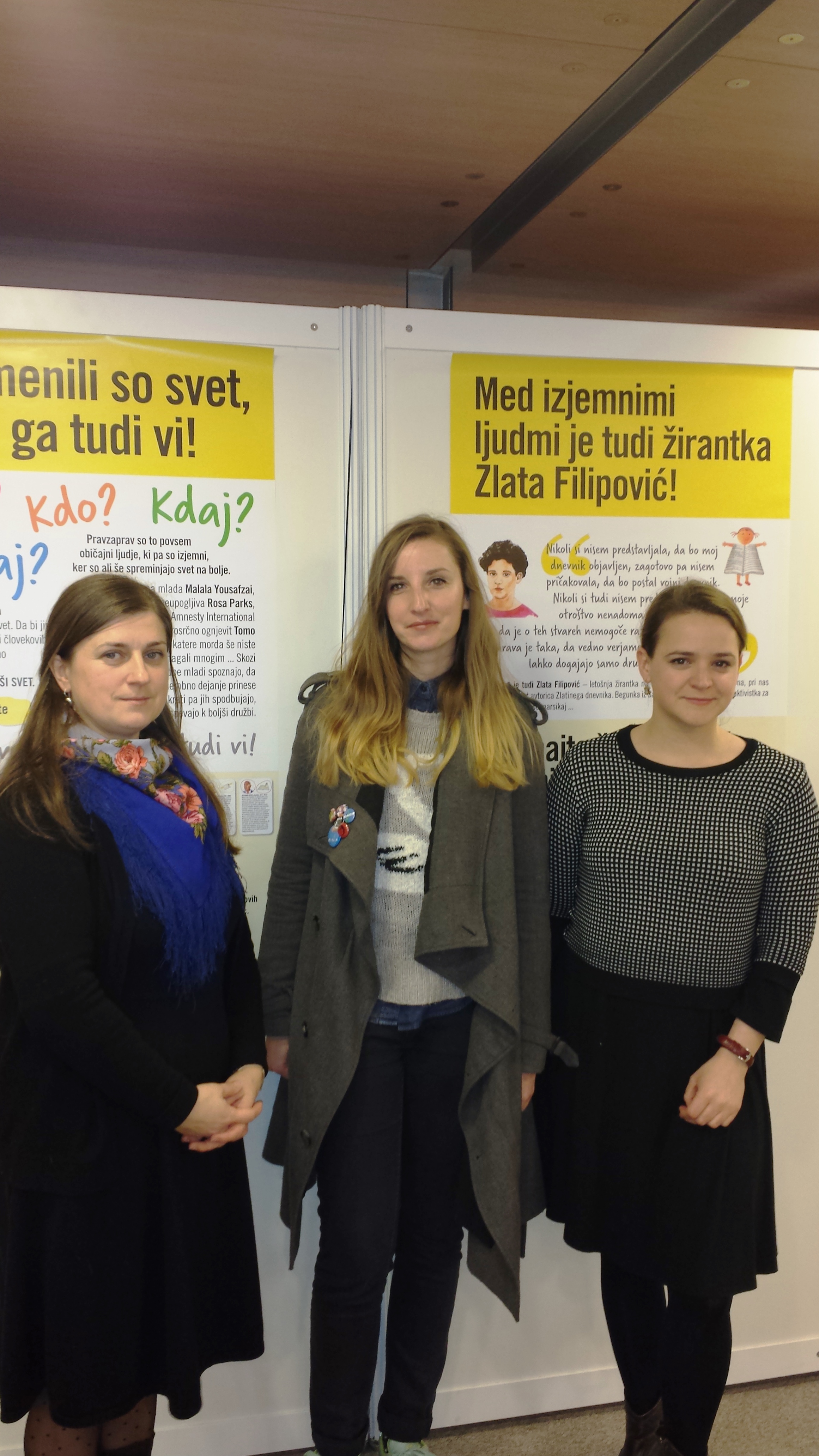 Zlata z žirantkama - levo Dragana T. Trivundža, predsednica slovenske Amnesty, na sredini pa režiserka in scenaristka Urša Menart.